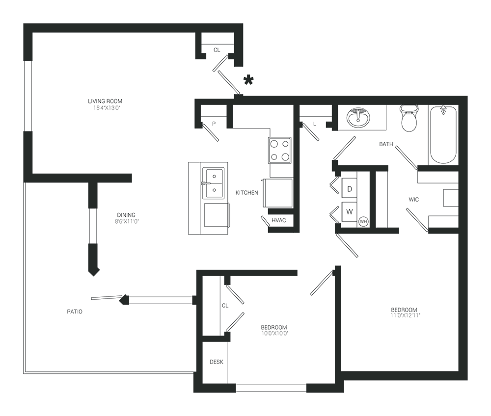 2 Dormitorios, 2 Baños, 1306 pies²Disponible AhoraEl más grandeEsta opción tiene las unidades más grandes para este modeloGalería del Modelo