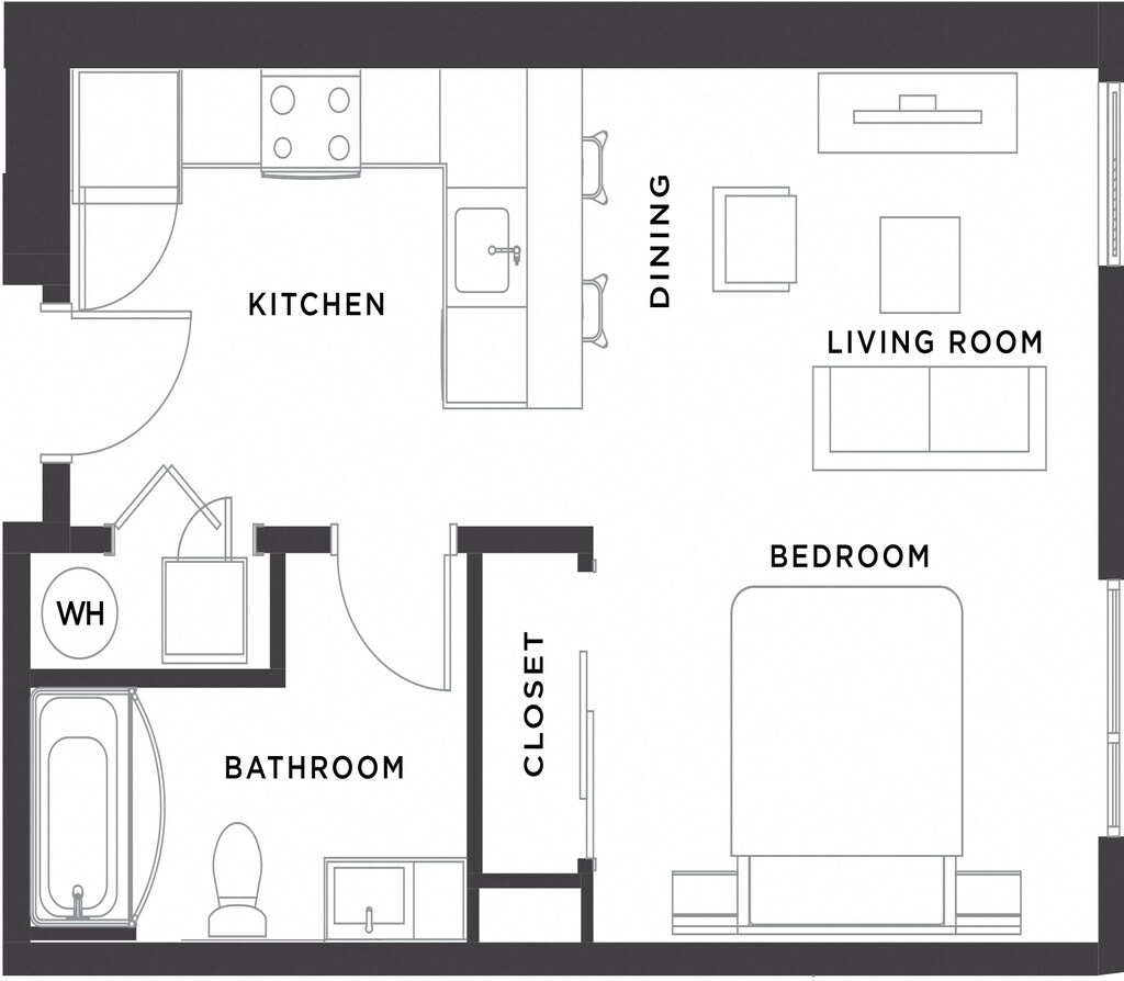1 Dormitorio, 1 Baño, 655-680 pies²Disponible AhoraGalería del Modelo