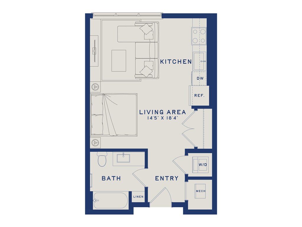 Estudio, 1 Baño, 505 pies²Disponible Nov 15Galería del Modelo
