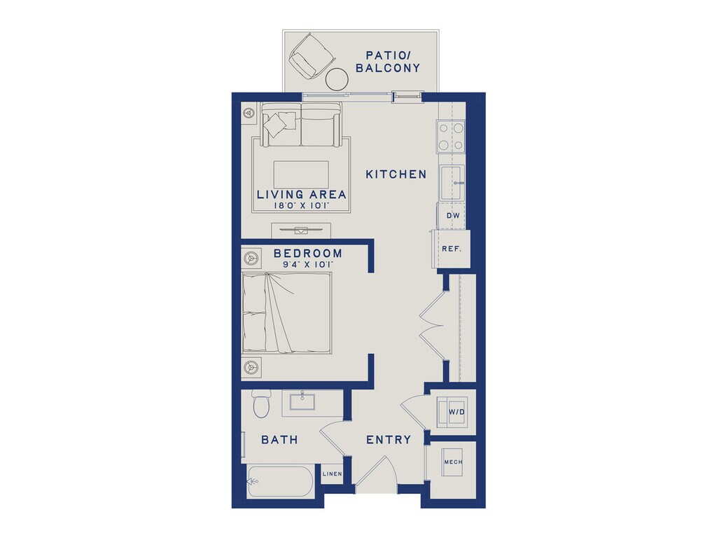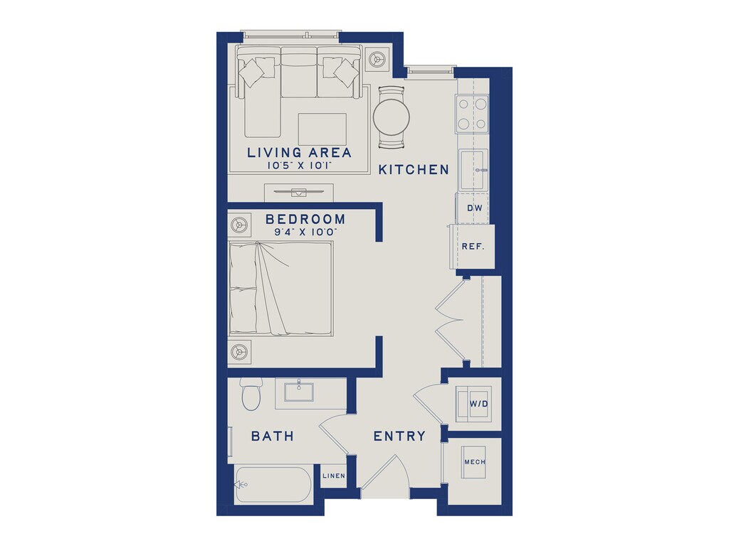 Estudio, 1 Baño, 624 pies²Disponible Nov 15El más grandeEsta opción tiene las unidades más grandes para este modeloGalería del Modelo