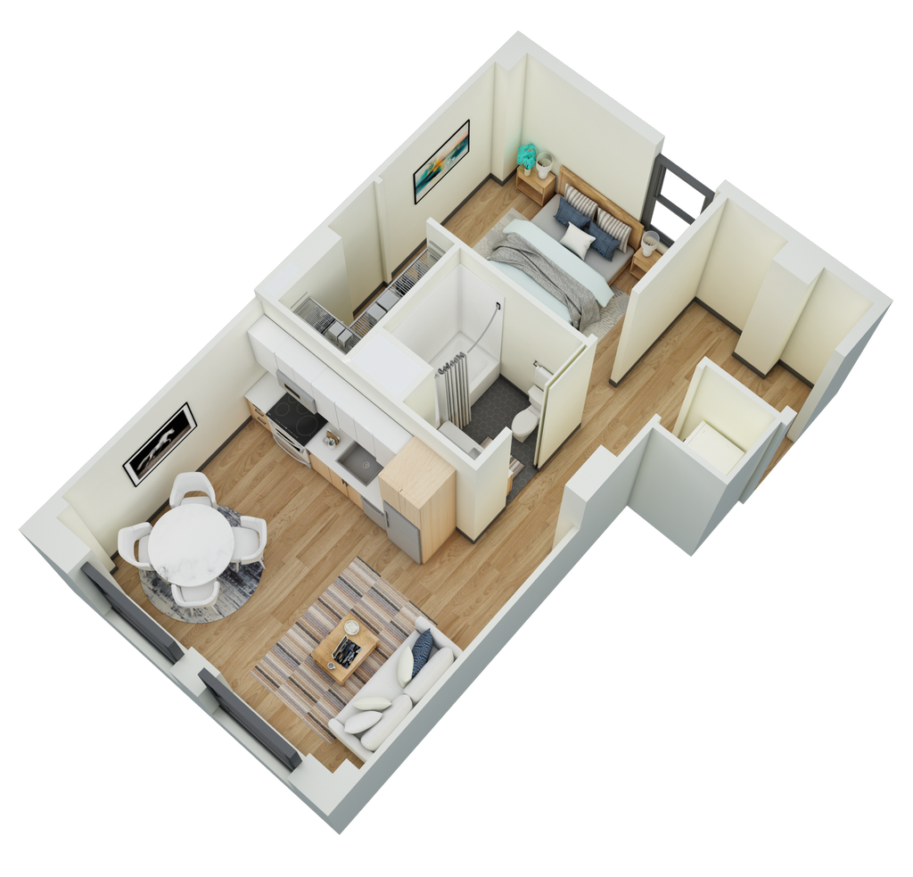 Modelo de apartamento: Studio 1 Bath-HDesde $999Estudio, 1 Baño, 378 sq ftDisponible Ahora![]()