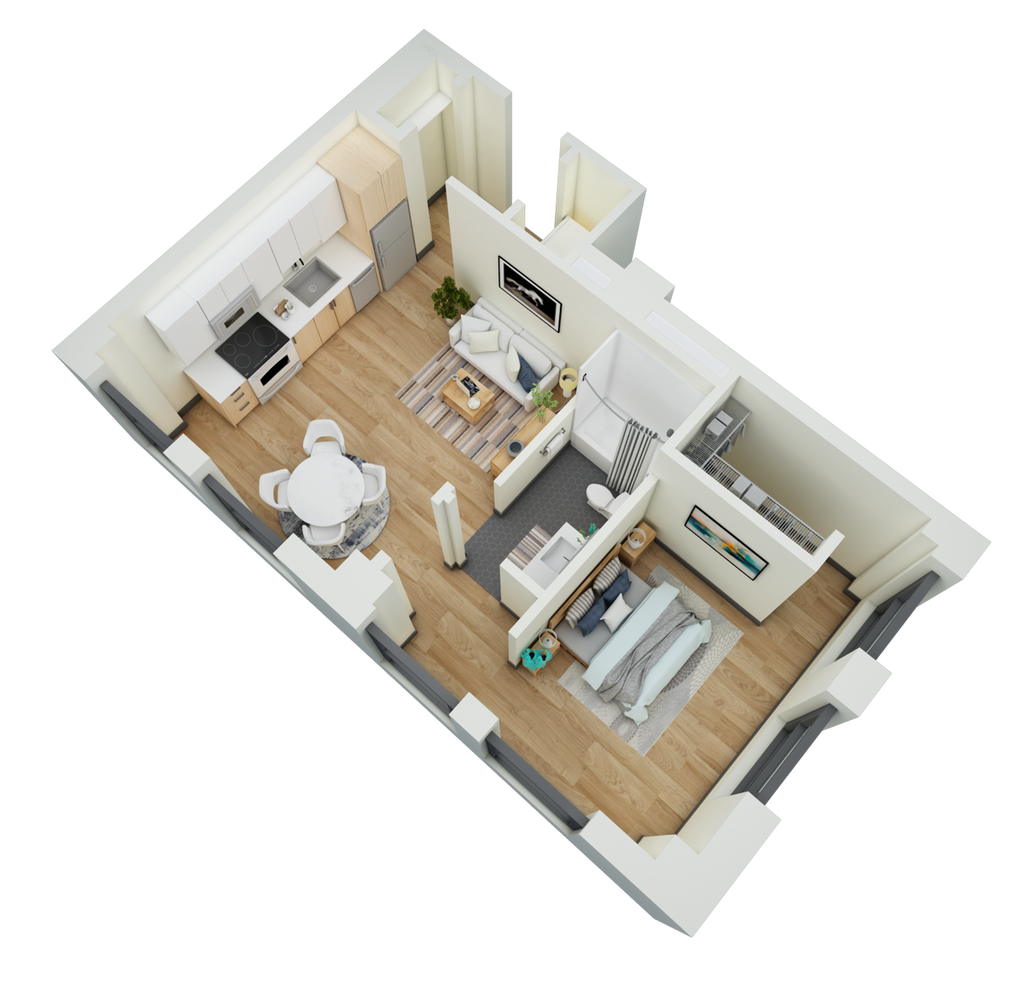 Estudio, 1 Baño, 453 pies²Disponible AhoraGalería del Modelo