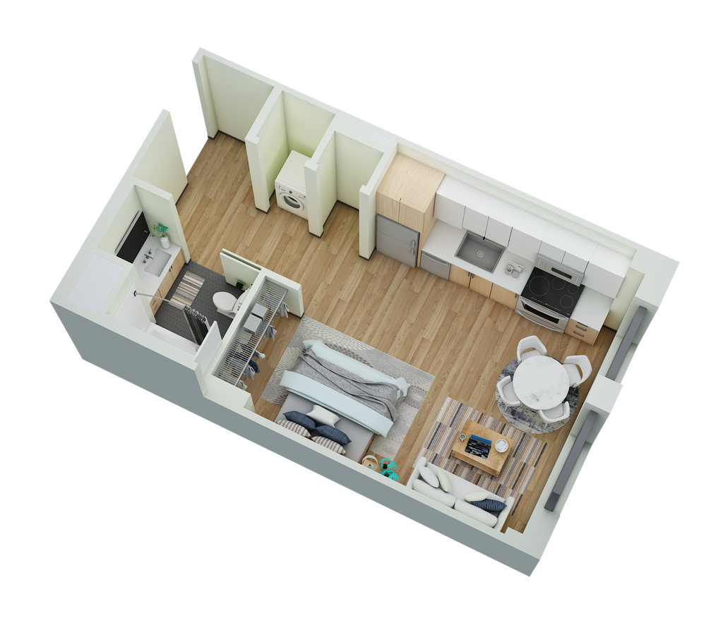 Estudio, 1 Baño, 410 pies²Disponible AhoraGalería del Modelo