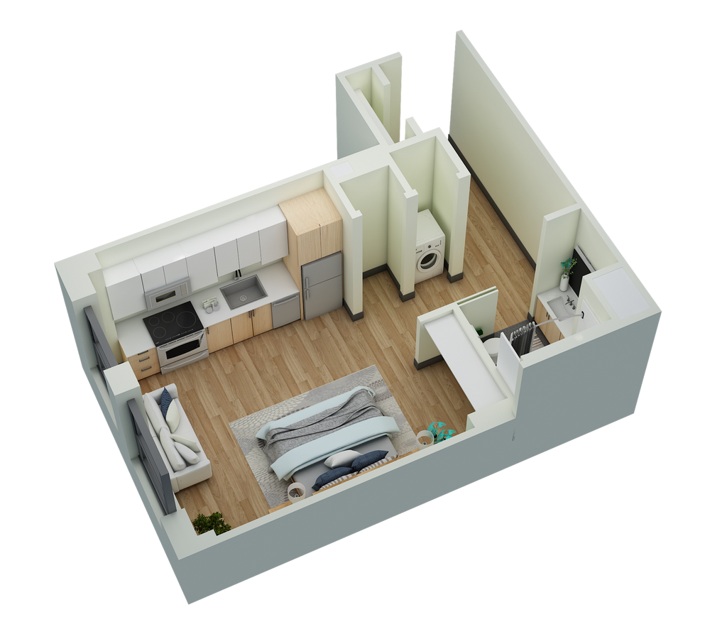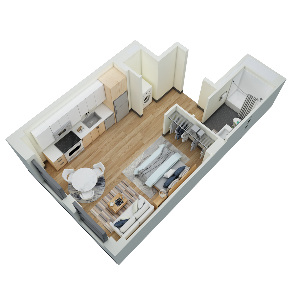 Estudio, 1 Baño, 418 pies²Disponible AhoraGalería del Modelo
