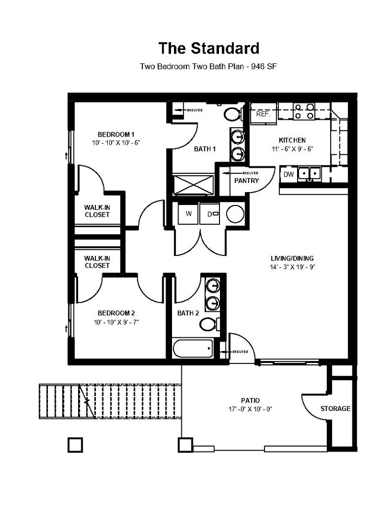 Modelo de apartamento: The Standard$1,7492 Dormitorios, 2 Baños, 946 sq ftDisponible AhoraThe Standard - Plano 1 The Suites