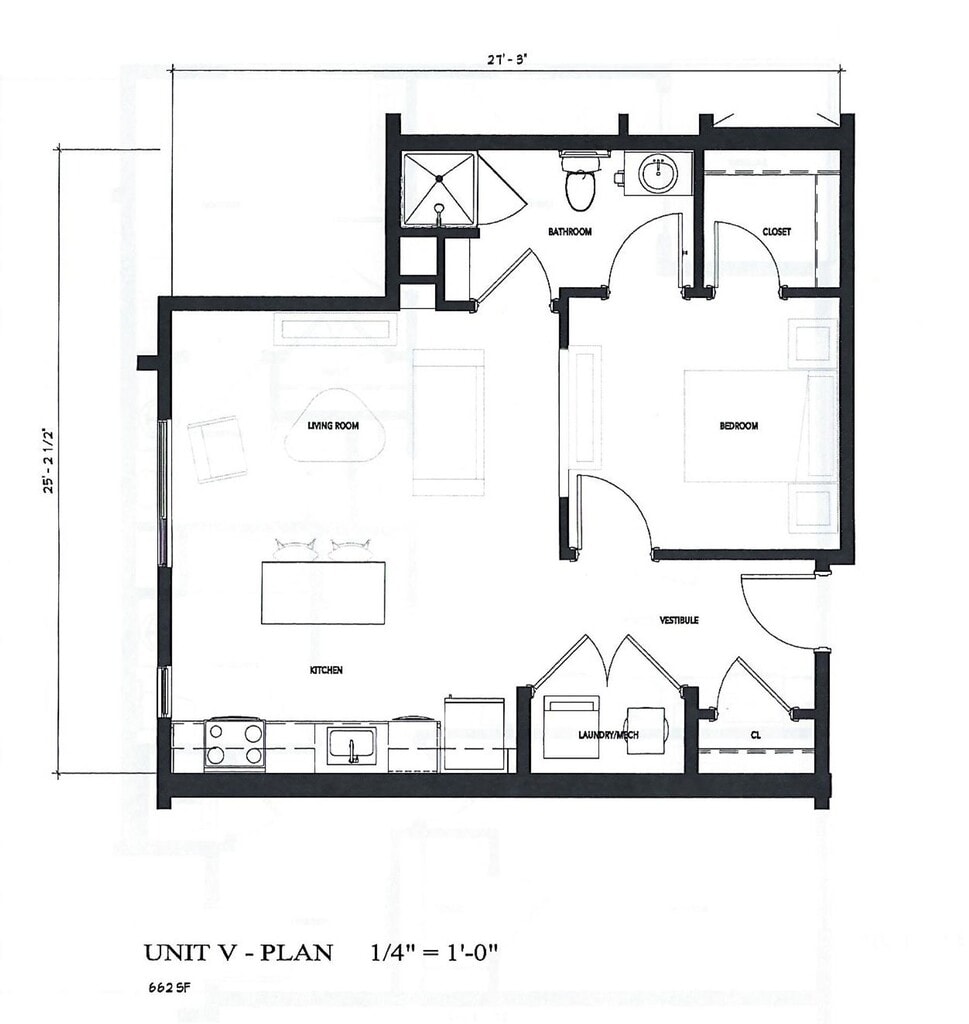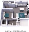 V - Plano 12 Unidad de apartamento: 411Modelo de apartamento: V$1,2001 Dormitorio, 1 Baño, 662 sq ftDisponible Ahora