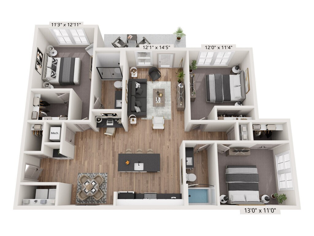 Modelo de apartamento: C1Desde $1,6053 Dormitorios, 2 Baños, 1365 sq ftDisponible AhoraLos planos de la planta son una interpretación artística. Todas las dimensiones son aproximadas. Los tamaños o el detalle del producto real y sus especificaciones pueden variar. No todas las características están disponibles en todos los hogares para rentar. Los precios y la disponibilidad están sujetos a cambios. El alquiler que se muestra es mensual. Se pueden aplicar ciertos cargos, por ejemplo, entrega de paquetes, recolección de basura, agua, servicios, etc. Depositos varian. Consulta a un representante para conocer detalles.