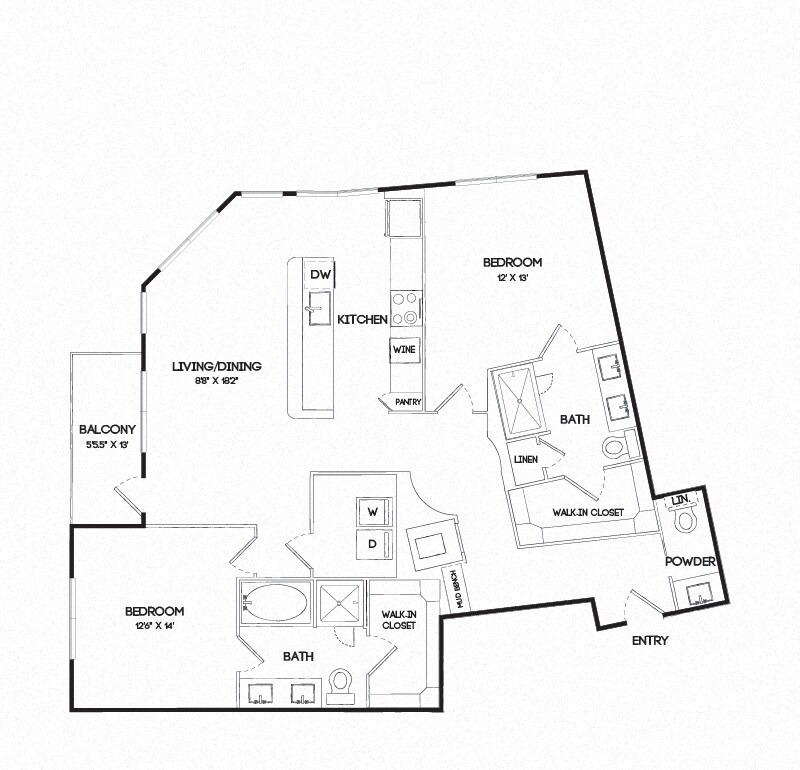 Modelo de apartamento: A5Desde $1,8701 Dormitorio, 1 Baño, 752 sq ftDisponible Ahora![]()