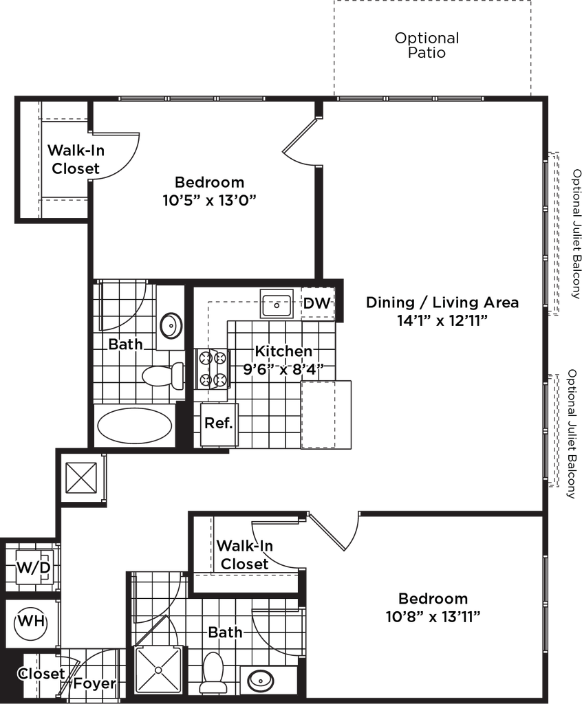 1 Dormitorio, 1 Baño, 672 pies²Disponible AhoraGalería del Modelo