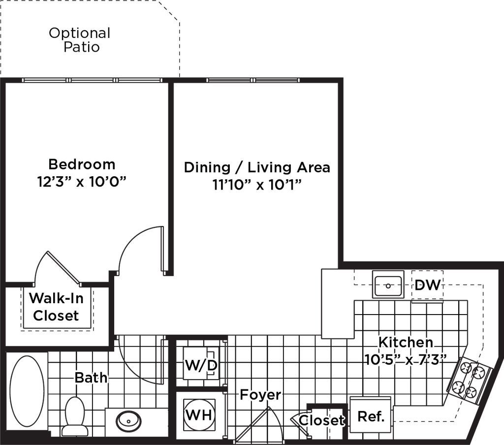 1 Dormitorio, 1 Baño, 705-753 pies²Disponible AhoraGalería del Modelo