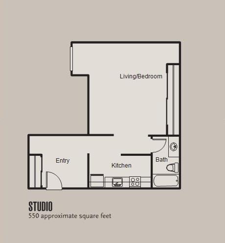 Estudio, 1 Baño, 550 pies²Galería del Modelo