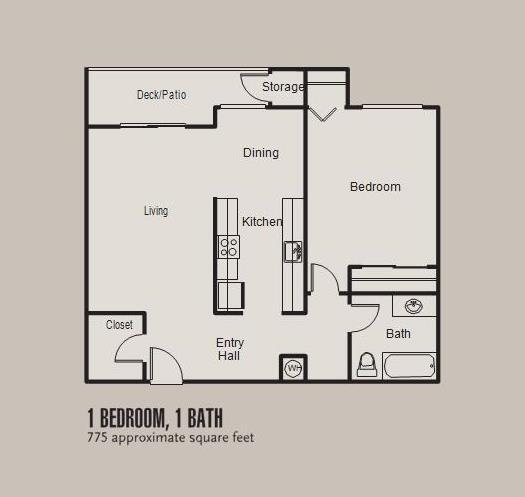 1 Dormitorio, 1 Baño, 775 pies²Galería del Modelo