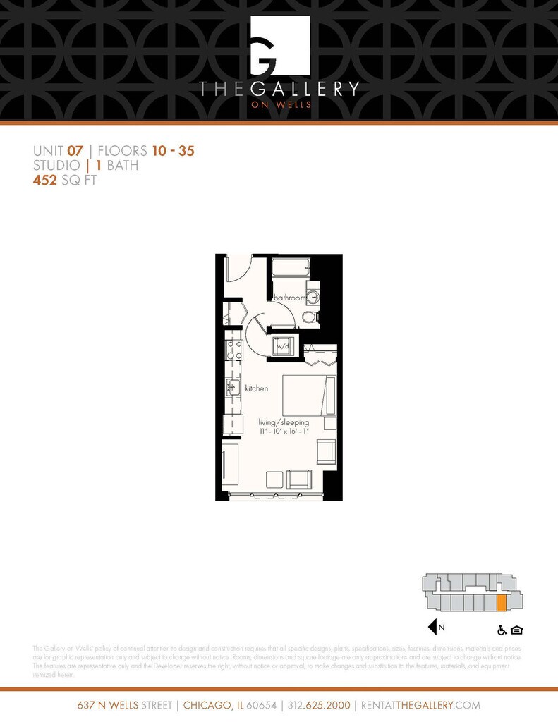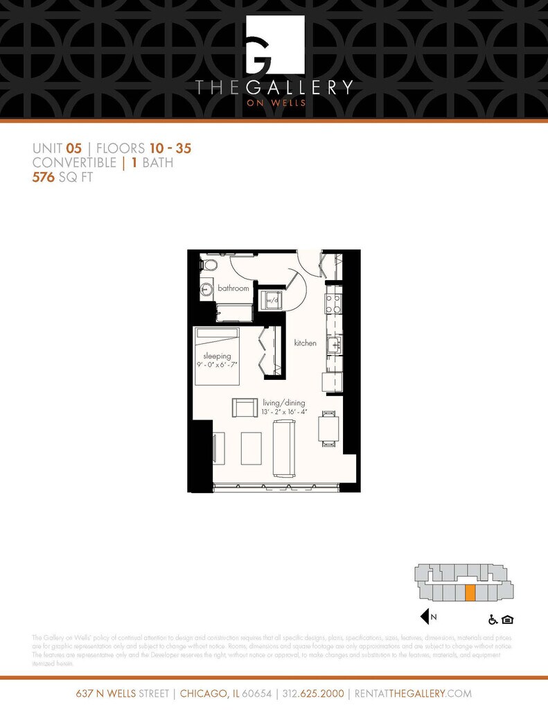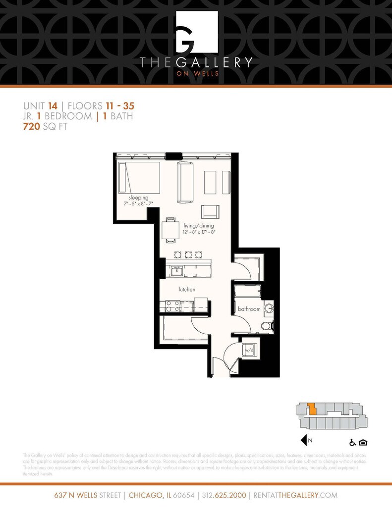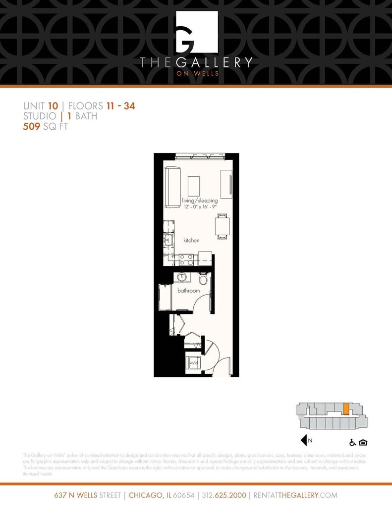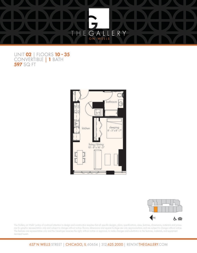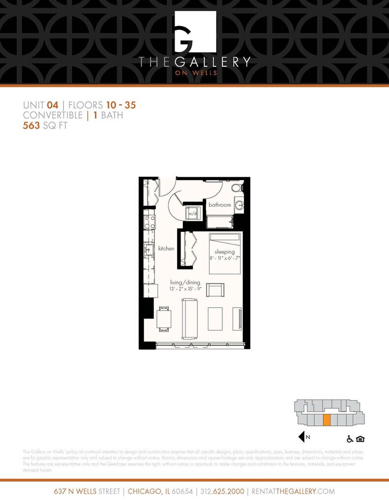 The Gallery on Wells ofrece apartamentos tipo estudio elegantemente diseñados, convertibles, de una, dos y tres habitaciones en alquiler con vistas incomparables y acabados cuidadosamente seleccionados para disfrutar de un diseño contemporáneo. Estas residencias tienen planos de planta abiertos con ventanas del piso al techo que ofrecen impresionantes vistas de la ciudad de Chicago. The Gallery cuenta con la mejor terraza de servicios en River North, que ofrece una gran variedad de comodidades de interior y al aire libre. Espacios íntimos de entretenimiento y relajación se combinan con intensos centros de ejercicios y actividades. Ubicado en el corazón de River North, en medio de un vecindario que marca tendencia y ofrece algo para todos los gustos. The Gallery on Wells realmente ha creado el arte de la vida urbana. ¡Múdate hoy mismo!