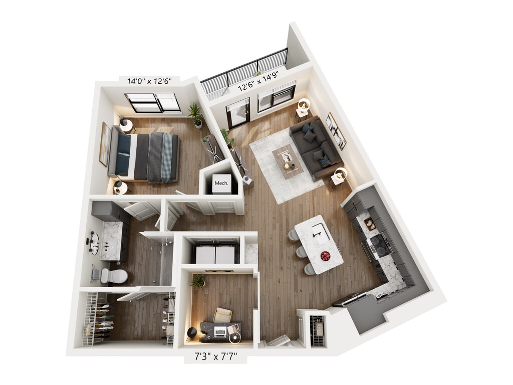 Estudio, 1 Baño, 695 pies²Disponible AhoraGalería del Modelo