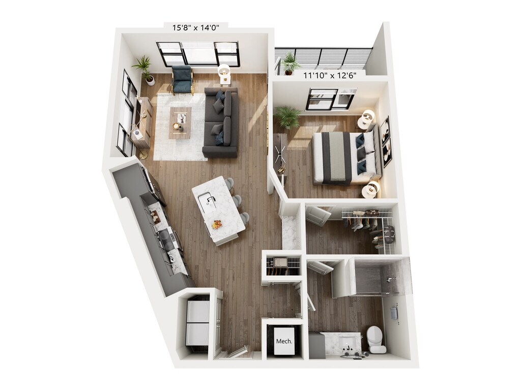 Modelo de apartamento: The UnscriptedDesde $1,734Estudio, 1 Baño, 695 sq ftDisponible Ahora![]()