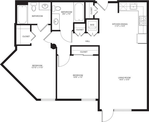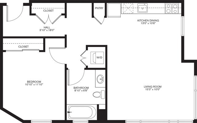 Modelo de apartamento: A31 Dormitorio, 1 Baño, 706 sq ftDisponible March 24, 2026![]()