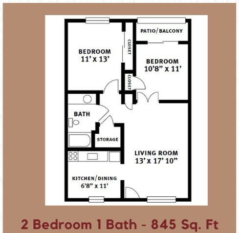 2 Dormitorios, 1 Baño, 845 pies²Detalles de Diponibilidad