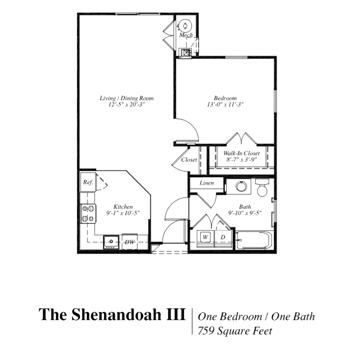 Modelo de apartamento: SHENANDOAH IV$1,6451 Dormitorio, 1 Baño, 880 sq ftNo DisponibleSHENANDOAH IV - Plano 1 2 Dormitorios