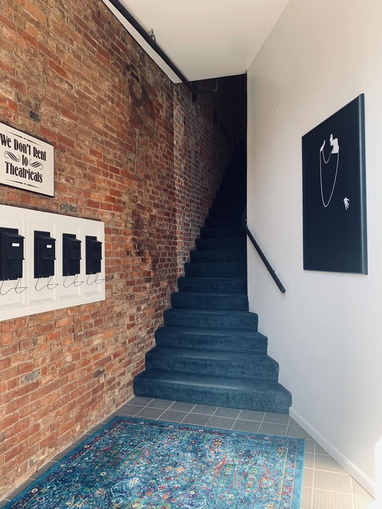 Located on Gorgeous Washington Street, 4th floor walk-up, better known as the penthouse. Exposed brick walls in historic downtown building, steps away from best coffee shop in the world and Binghamton University downtown center. Across the street from parking ramp. Fun street with lots of little shops and restaurants. Beautiful locked building, owner-occupied.