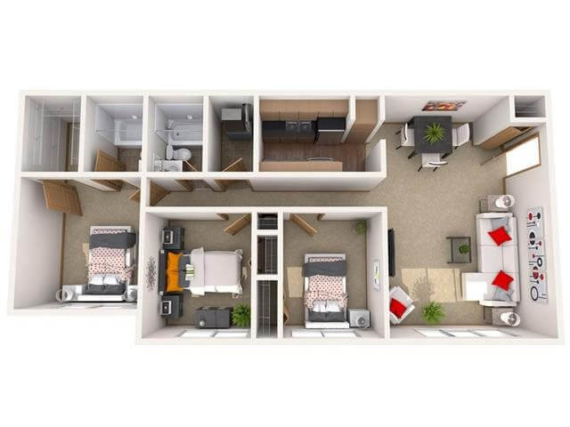 Modelo de apartamento: CarlyleDesde $9841 Dormitorio, 1 Baño, 710 sq ftDisponible Ahora![]()