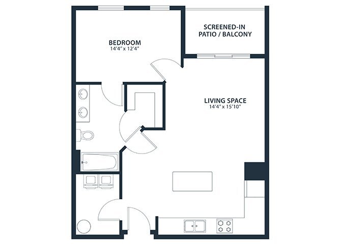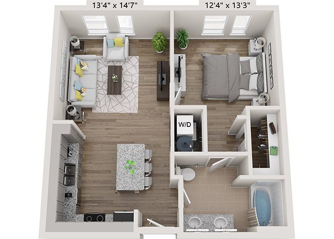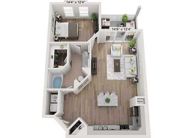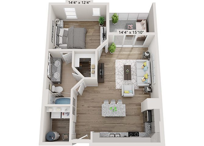 1 Dormitorio, 1 Baño, 856 pies²Disponible AhoraEl más grandeEsta opción tiene las unidades más grandes para este modeloGalería del Modelo