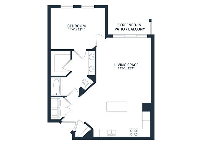 1 Dormitorio, 1 Baño, 812 pies²Disponible AhoraGalería del Modelo