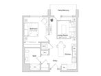 1 Dormitorio, 1 Baño, 828 pies²Disponible January 5, 2026Galería del Modelo