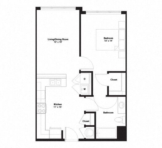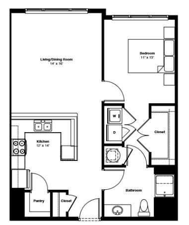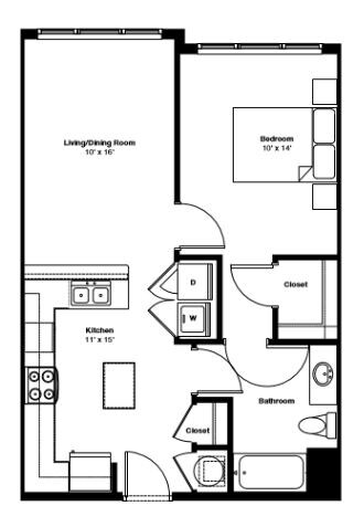 1 Dormitorio, 1 Baño, 688 pies²Disponible AhoraGalería del Modelo