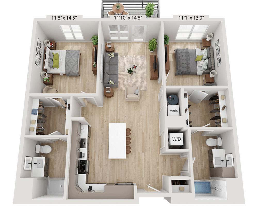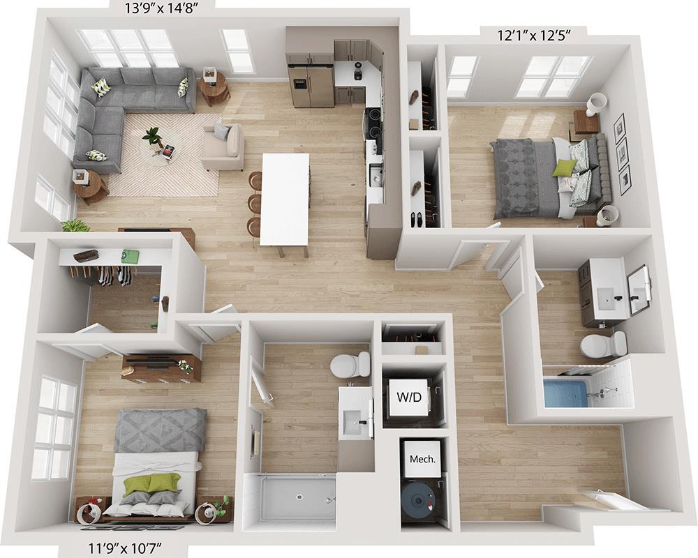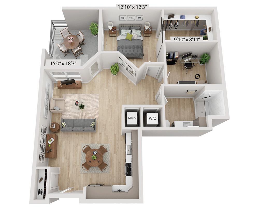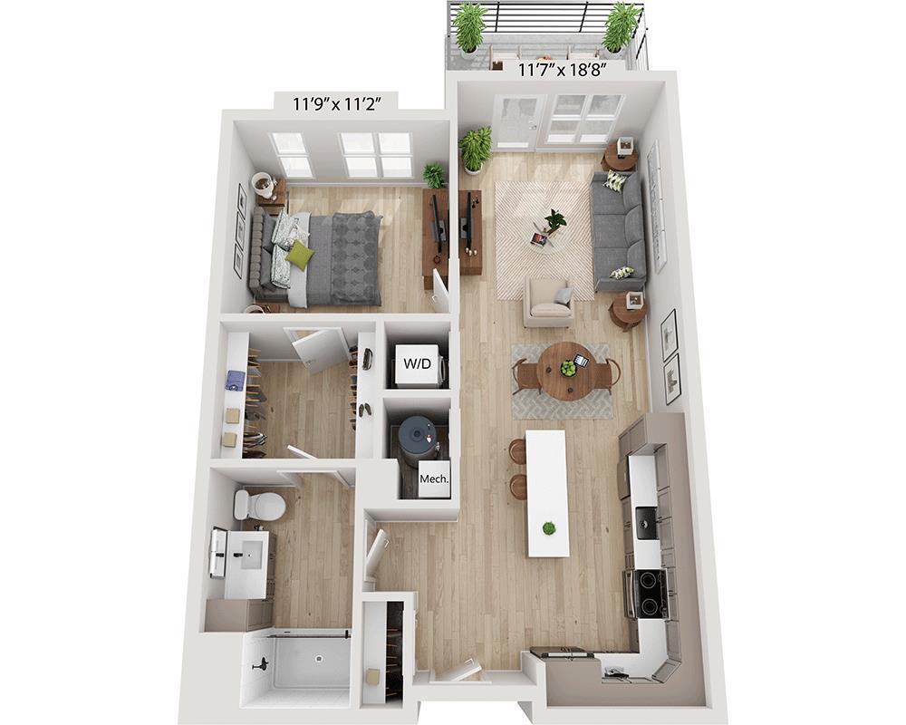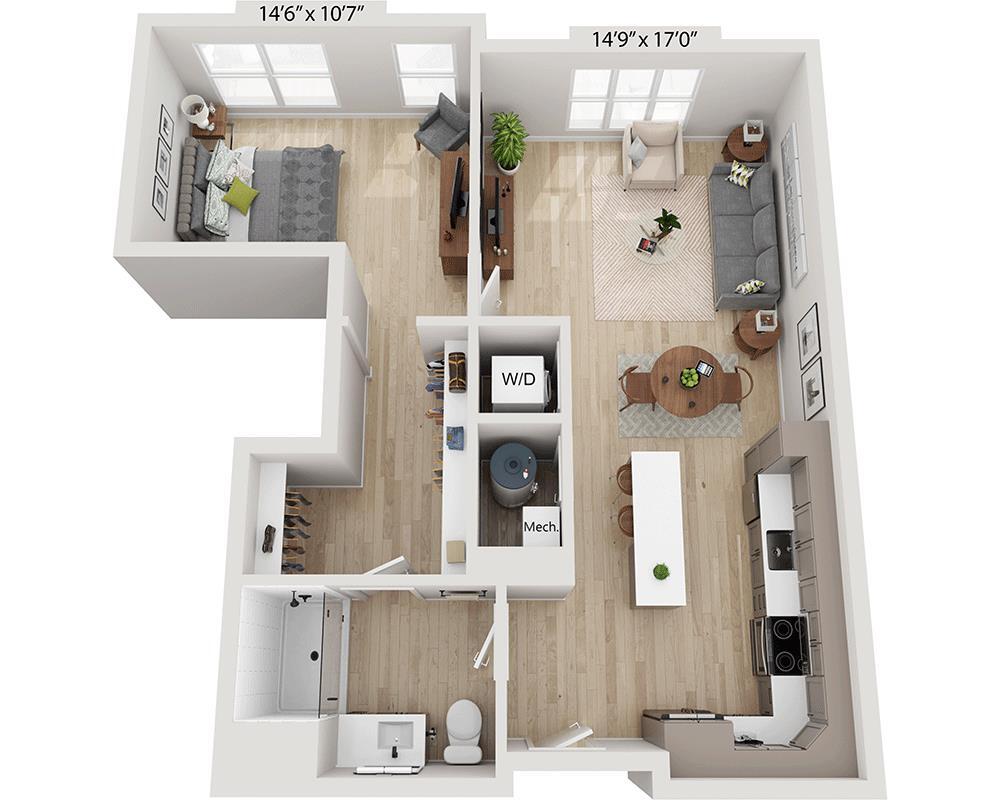 1 Dormitorio, 1 Baño, 880 pies²Disponible AhoraGalería del Modelo