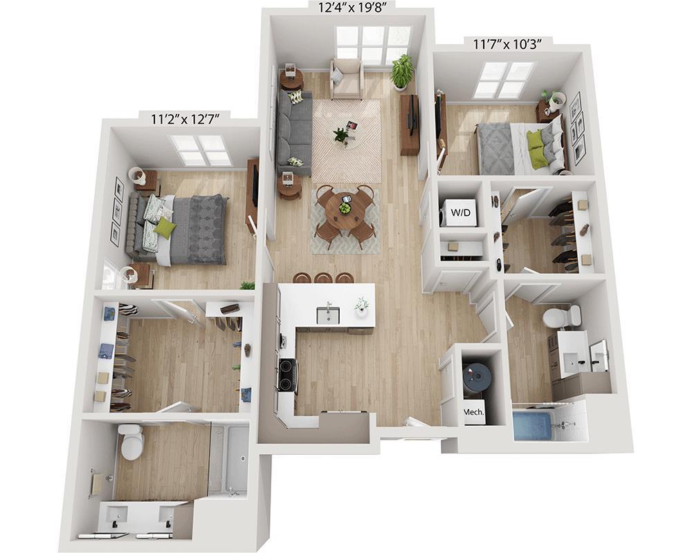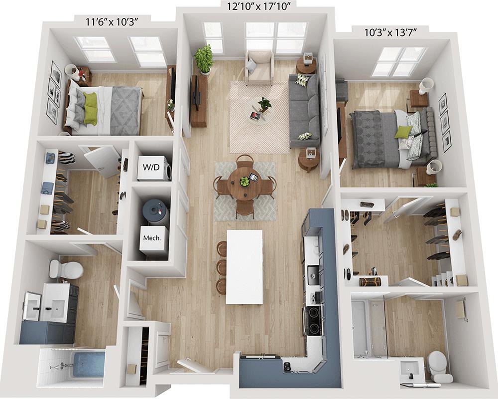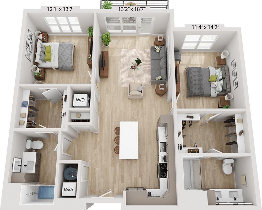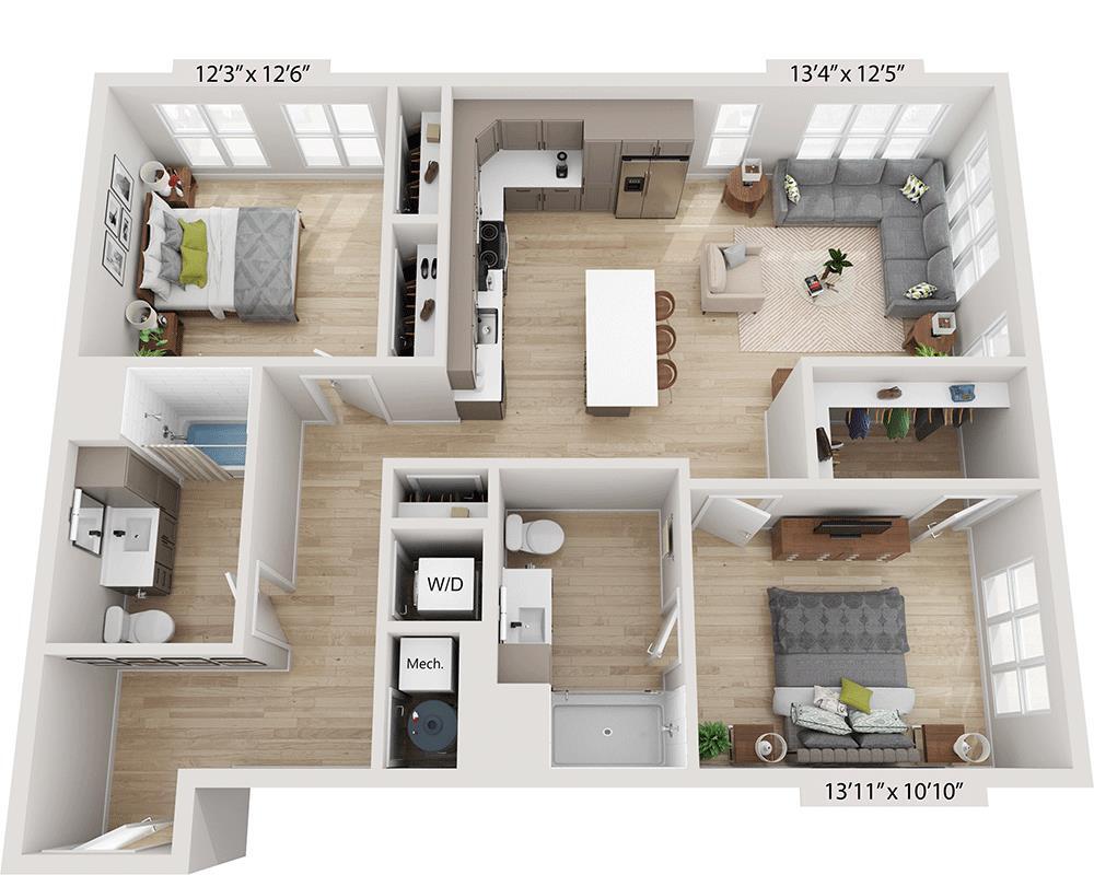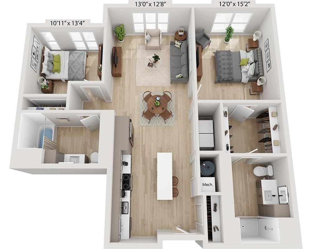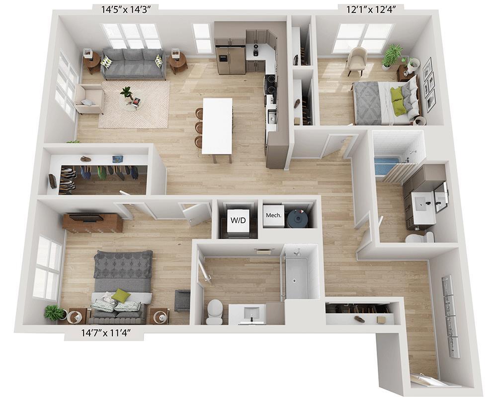 1 Dormitorio, 1 Baño, 880 pies²Disponible AhoraGalería del Modelo