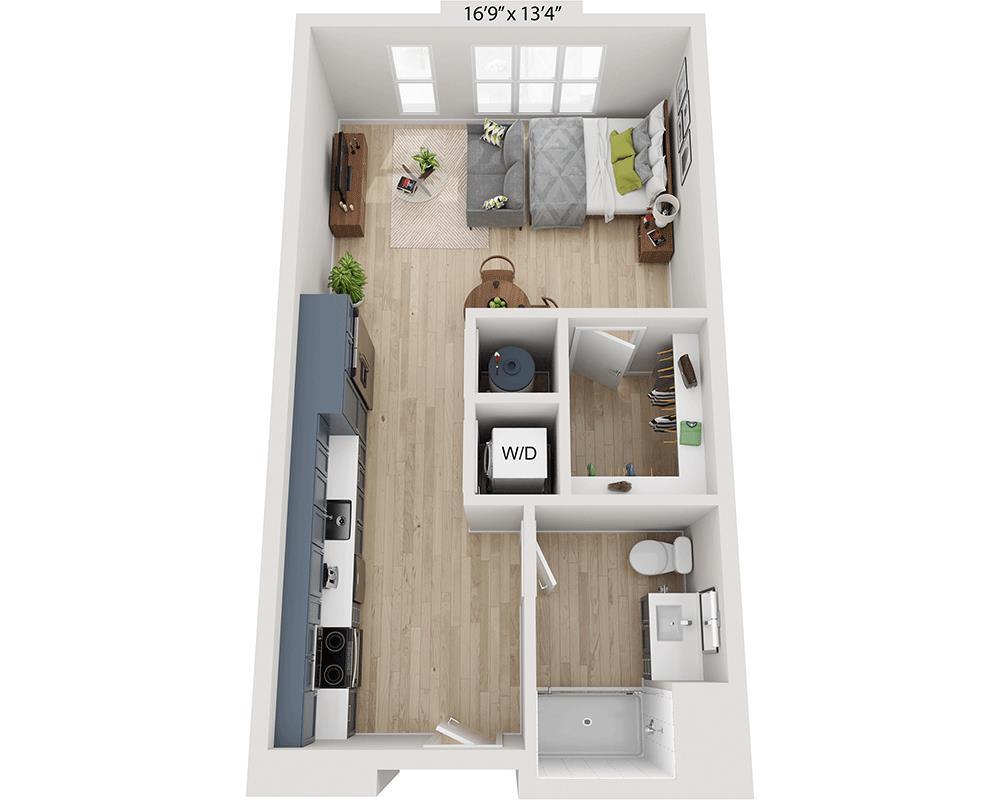Estudio, 1 Baño, 568 pies²Precio Mensual TotalDisponible May 16Precio Mensual Total