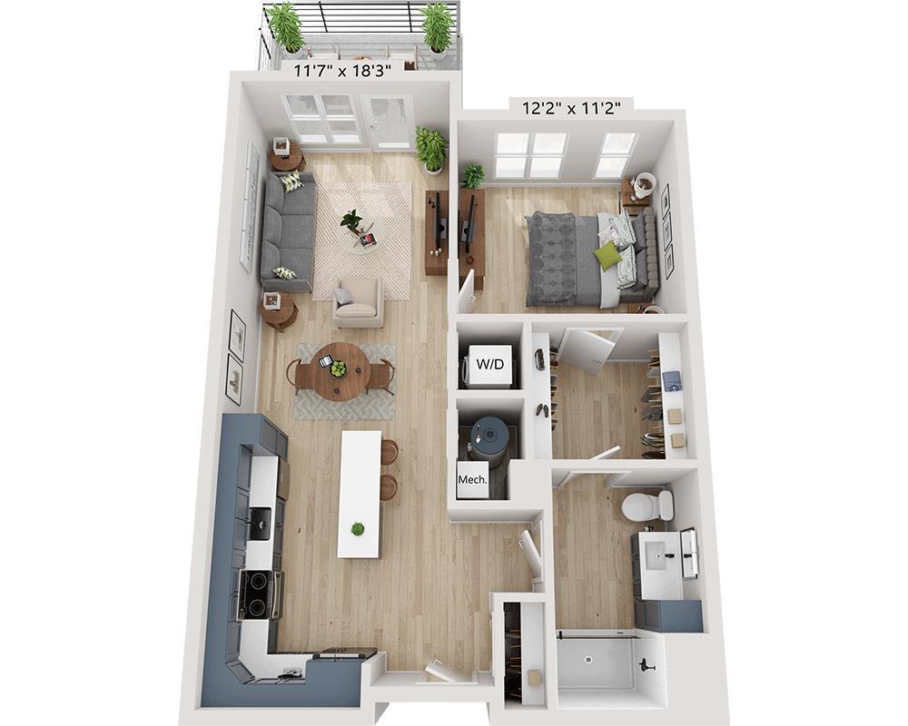 Renta Base$1,820 - $2,917Cuotas Mensuales Obligatorias$46Precio Mensual Total$1,866 - $2,963 - 558–1,310 Pies cuadrados
