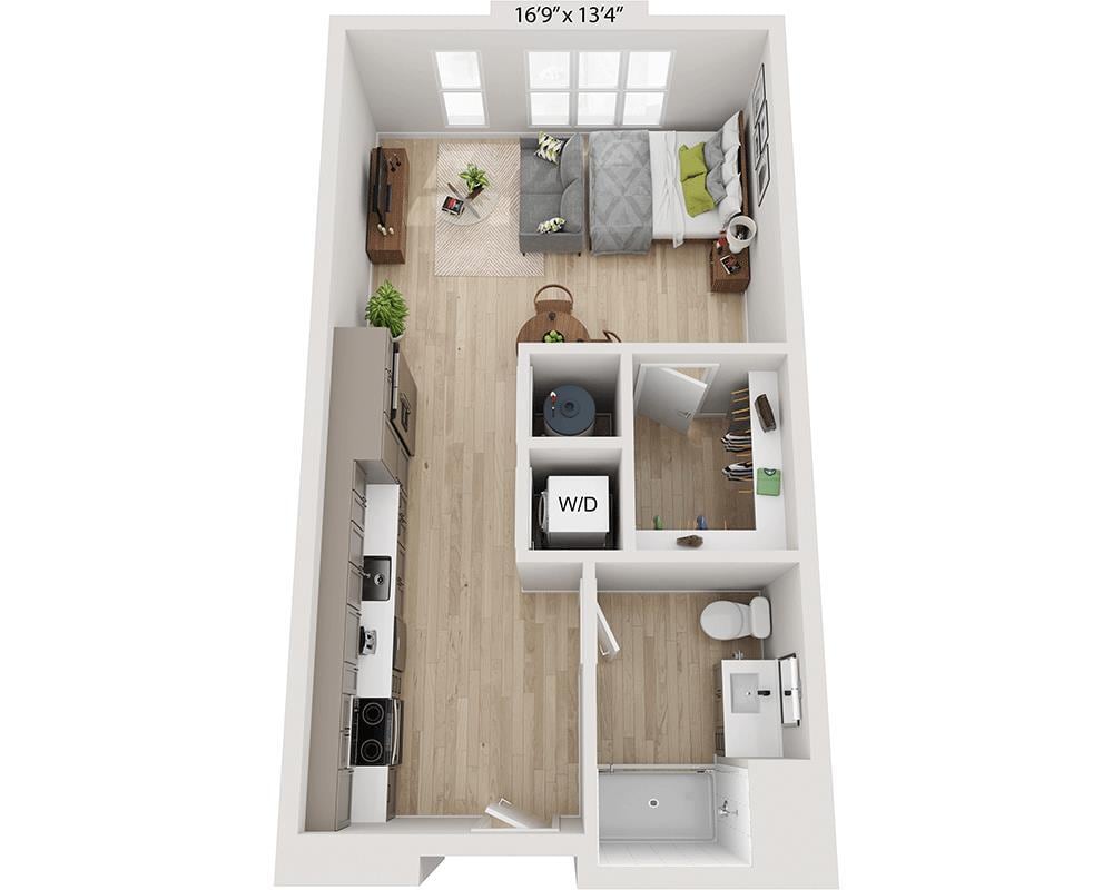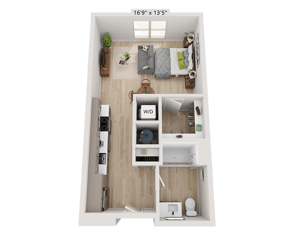 Studio E1C - Plano 1 Unidad de apartamento: W-2335Modelo de apartamento: Studio E1C$1,857Estudio, 1 Baño, 568 sq ftDisponible November 23, 2025PlanosFotos![]()