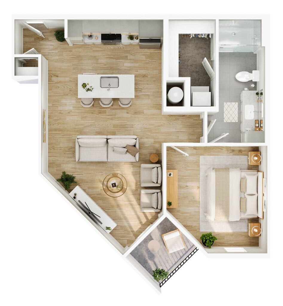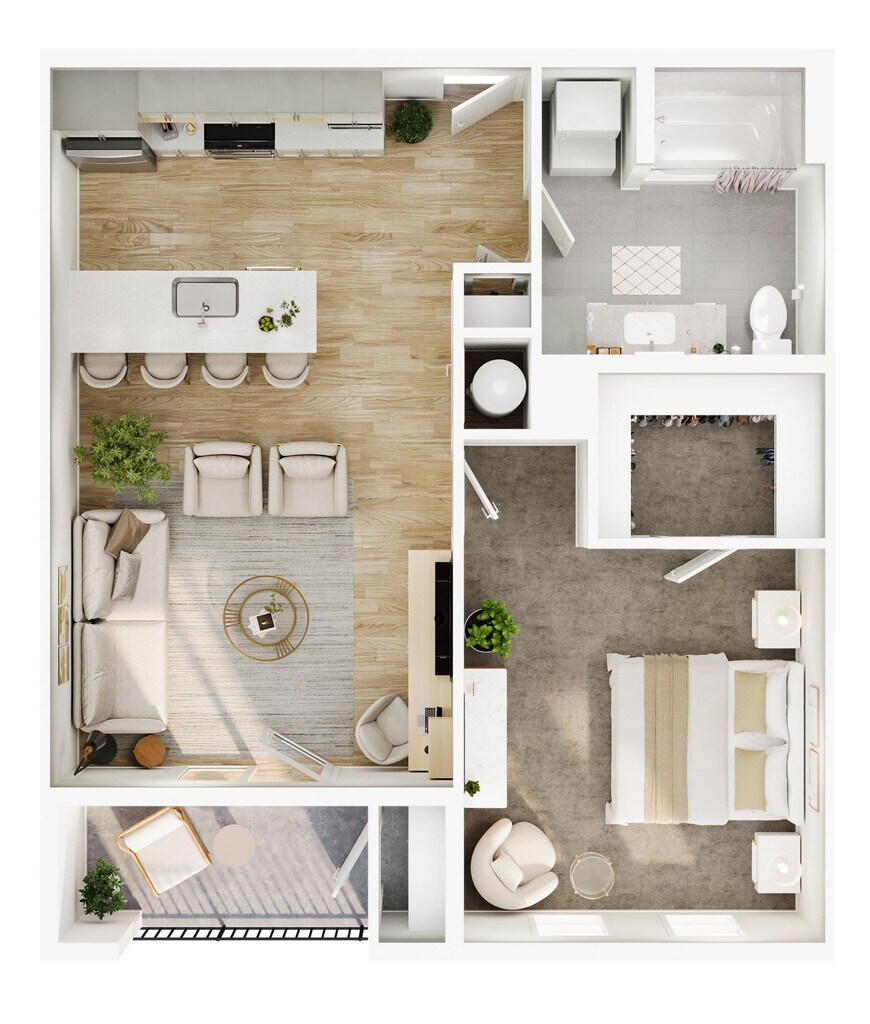 Modelo de apartamento: The Wilson1 Dormitorio, 1 Baño, 710 sq ftDisponible December 15, 2025![]()
