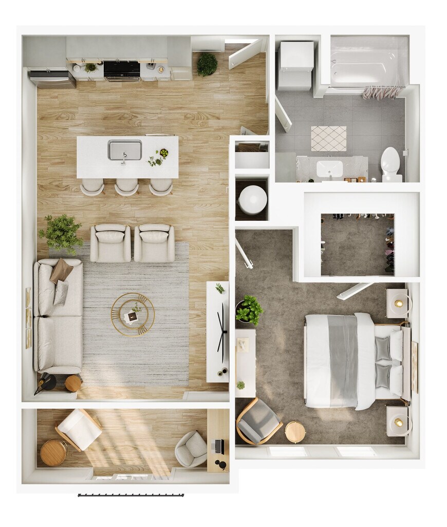 Modelo de apartamento: The Kessler1 Dormitorio, 1 Baño, 710 sq ftDisponible December 15, 2025![]()
