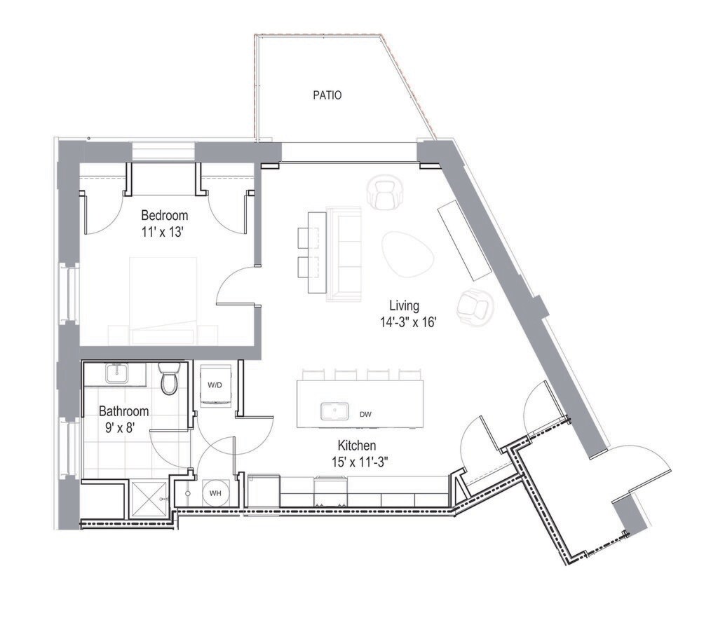 Modelo de apartamento: GW 003$1,0251 Dormitorio, 1 Baño, 656 sq ftDisponible Ahora![]()