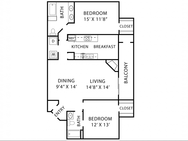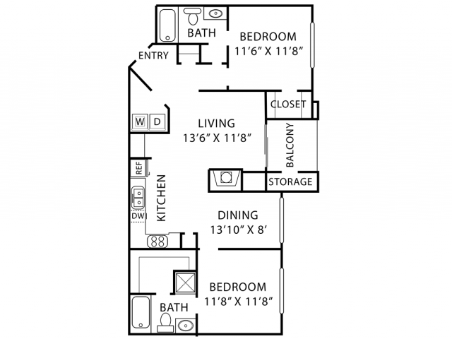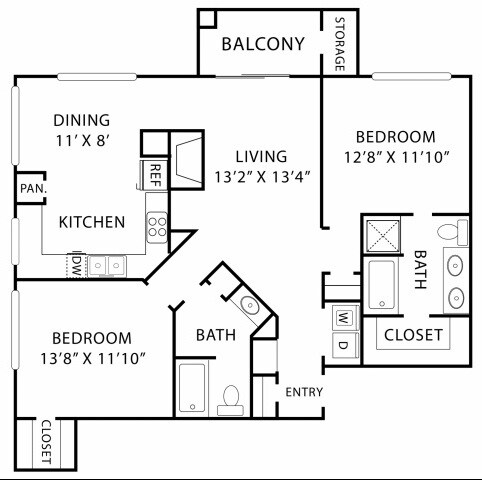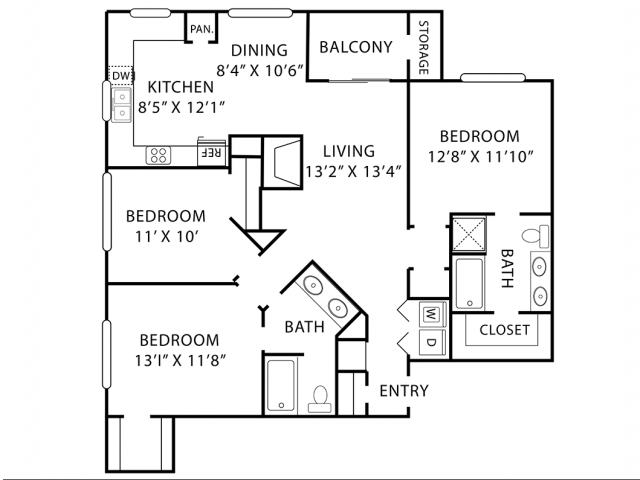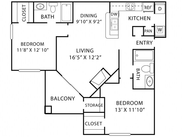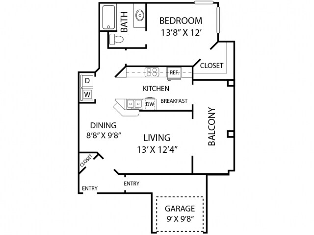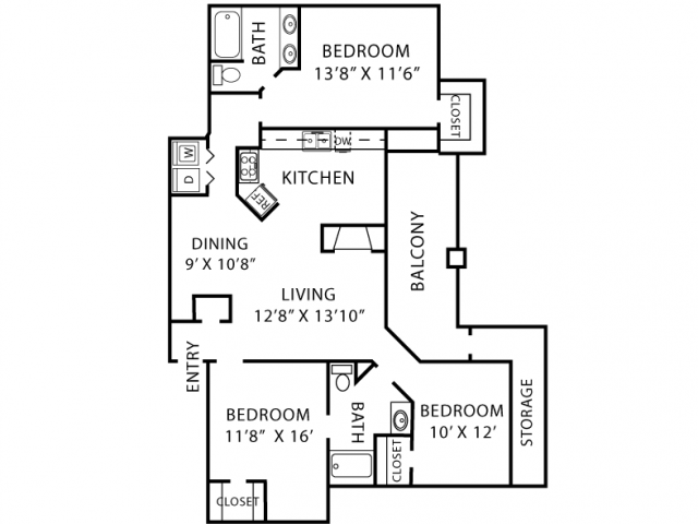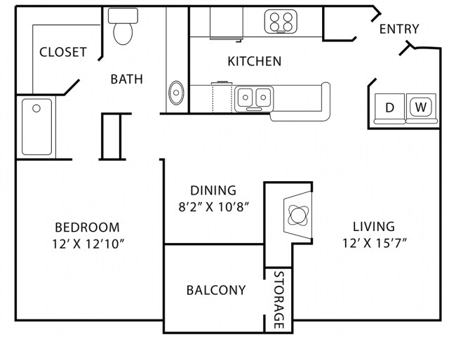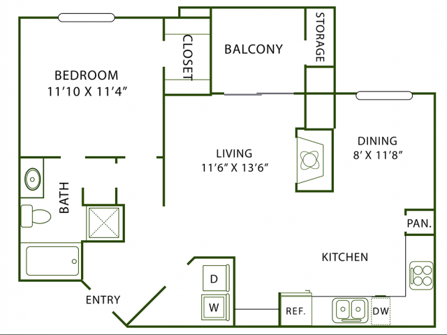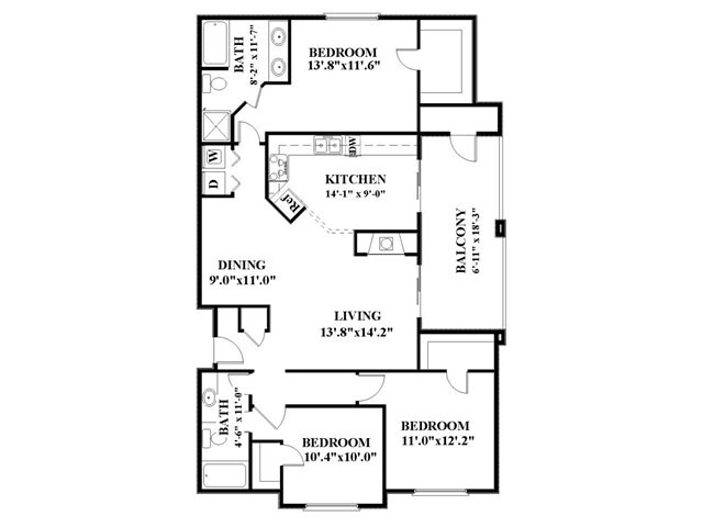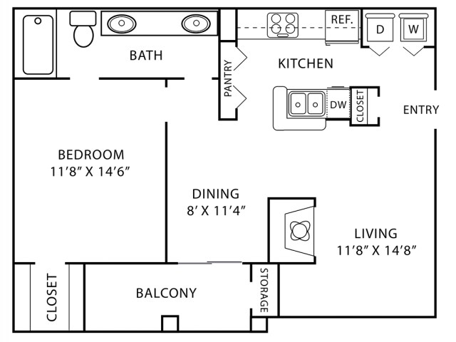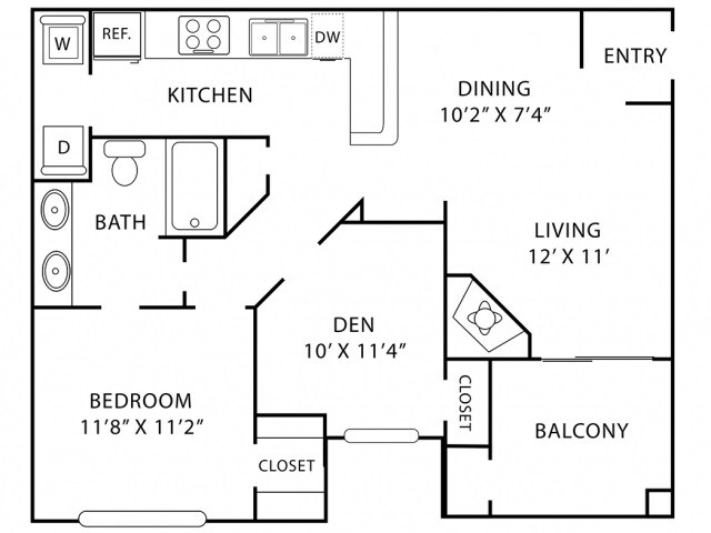 Modelo de apartamento: A3Desde $1,0321 Dormitorio, 1 Baño, 718 sq ftDisponible Ahora![]()