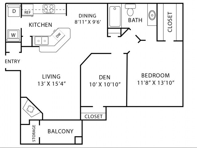 1 Dormitorio, 1 Baño, 770 pies²Disponible AhoraGalería del Modelo