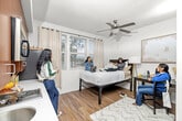 Cuando buscas vivienda en San Bernardino, no hay mejor opción que The Glen. Aquí no encontrarás un piso de estudiantes más, sino tu nuevo hogar. Con una variedad de diseños de 5 habitaciones, cocinas gourmet, lavadoras y secadoras grandes y baños privados, The Glen es una vida social más lujosa que las viviendas tradicionales para estudiantes. Y nuestros diseñadores agregaron una gran cantidad de acabados simples pero modernos para que tu apartamento se sienta más cómodo, incluidos garajes personales, pisos estilo madera y encimeras de granito. Así que pasa una noche relajándote y asando a la parrilla con amigos en The Glen. Además, nuestra ubicación en CSUSB es algo de lo que presumir. Ubicado directamente al otro lado de la calle y a solo unos pasos de CSUSB, las habitaciones en alquiler en The Glen están en el centro de todo. ¡Disfruta de comodidades de lujo y planos de planta abiertos con tarifas mensuales bajas! ¡En The Glen, experimentarás el mejor alojamiento para estudiantes que San Bernardino tiene para ofrecer! Vive justo al lado del campus mientras disfrutas de la libertad de un estilo de vida fuera del campus y acceso a tiendas minoristas en la propiedad. ¡Vive la mejor vida posible durante tu estadía en CSUSB con The Glen!