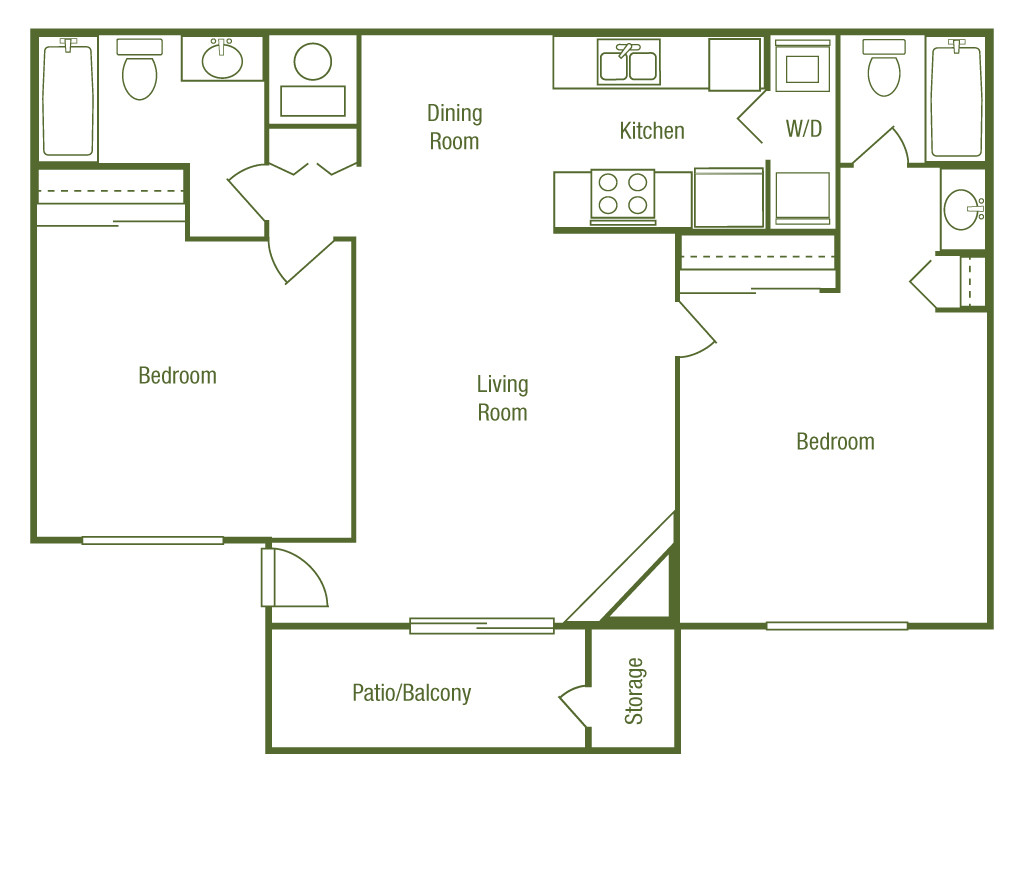 2 Dormitorios, 1 Baño, 850 pies²Disponible AhoraGalería del Modelo