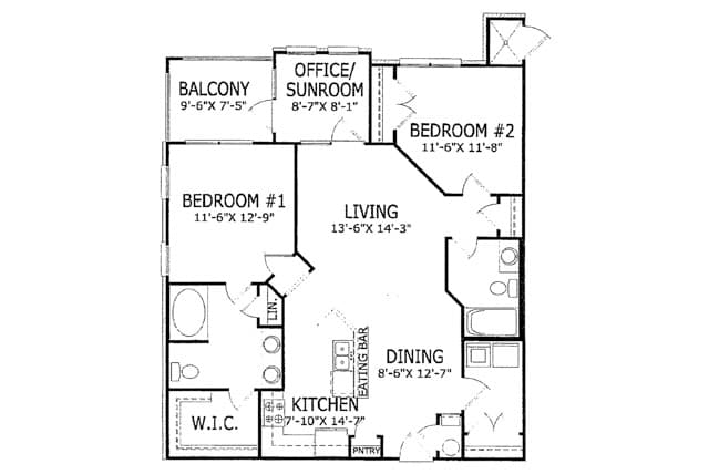 Modelo de apartamento: 2x2 1225$1,2952 Dormitorios, 2 Baños, 1225 sq ftNo Disponible![]()