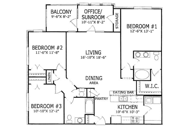 Modelo de apartamento: 3 Beds, 2 baths$1,3503 Dormitorios, 2 Baños, 1522 sq ftNo Disponible![]()