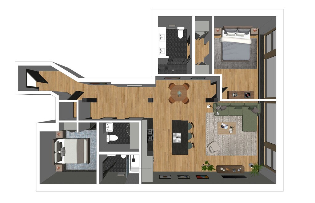 1 Dormitorio, 1 Baño, 720-804 pies²Disponible AhoraGalería del Modelo