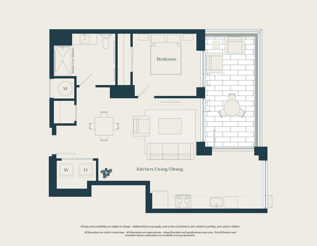 Los precios mostrados para esta propiedad son precios mensuales totales con tarifas incluidas.Fecha Disponibilidad Unidad Pies² Llamar para disponibilidad 0 Bed - 1 Bath | S03 592 pies² Características y Comodidades de Modelo