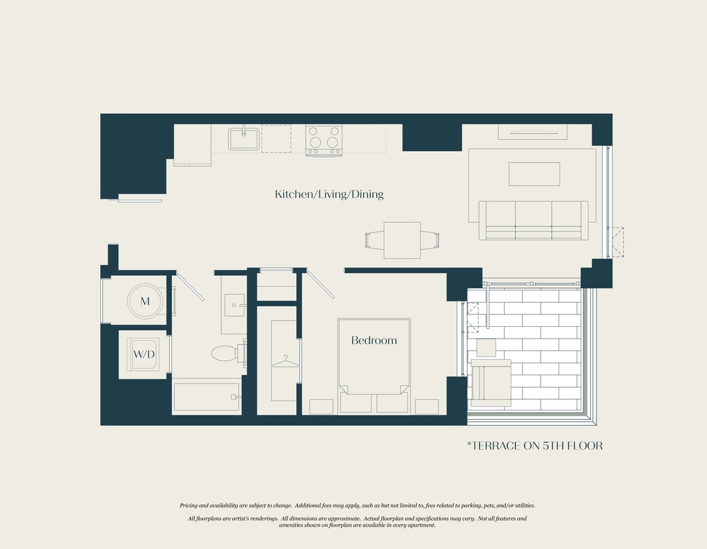 Modelo de apartamento: 0 Bed - 1 Bath | S02Desde $2,260Estudio, 1 Baño, 555 sq ftDisponible Ahora![]()