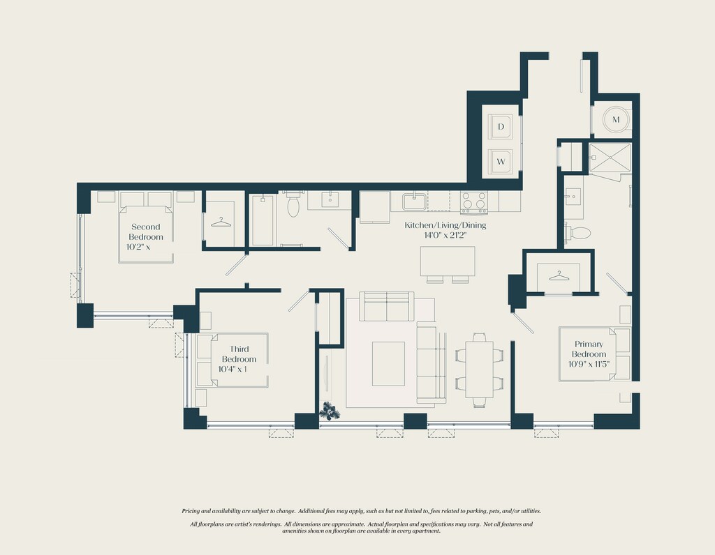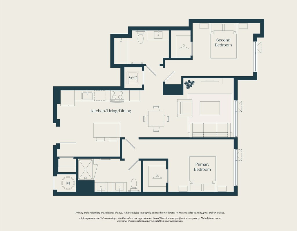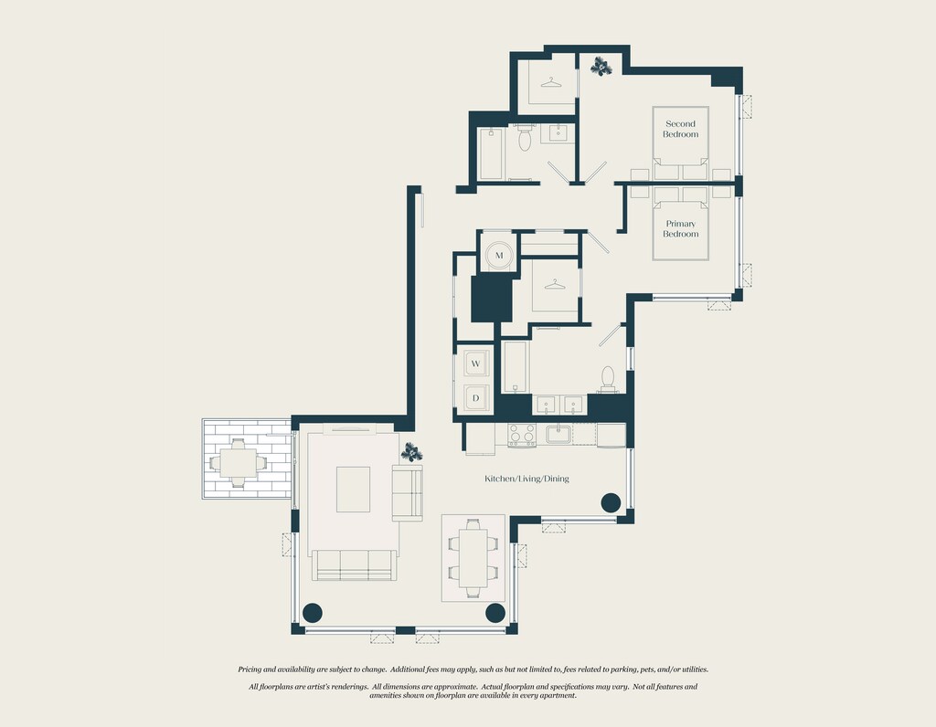 Modelo de apartamento: 1 Bed - 1 Bath | AJ6Desde $2,5651 Dormitorio, 1 Baño, 692 sq ftDisponible AhoraLos planos son representaciones artísticas. Todas las dimensiones son aproximadas. El producto y las especificaciones reales pueden variar en tamaño o detalle. No todas las características están disponibles en cada vivienda en alquiler. Por favor, consulta con un representante para obtener más detalles.