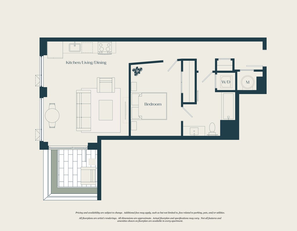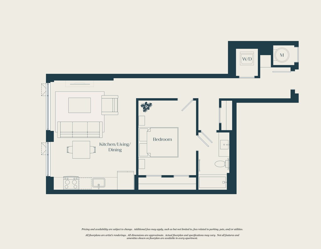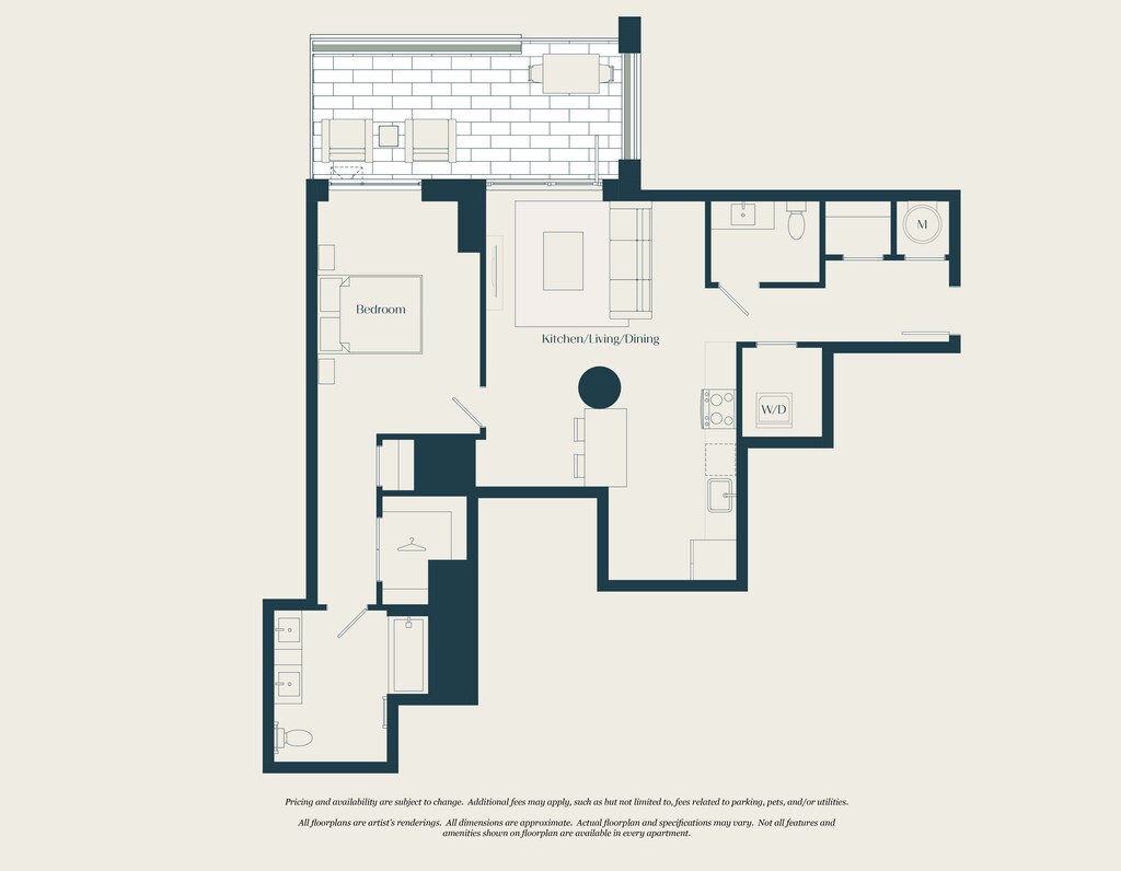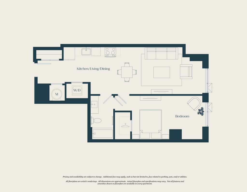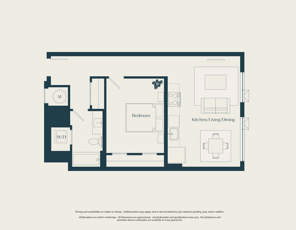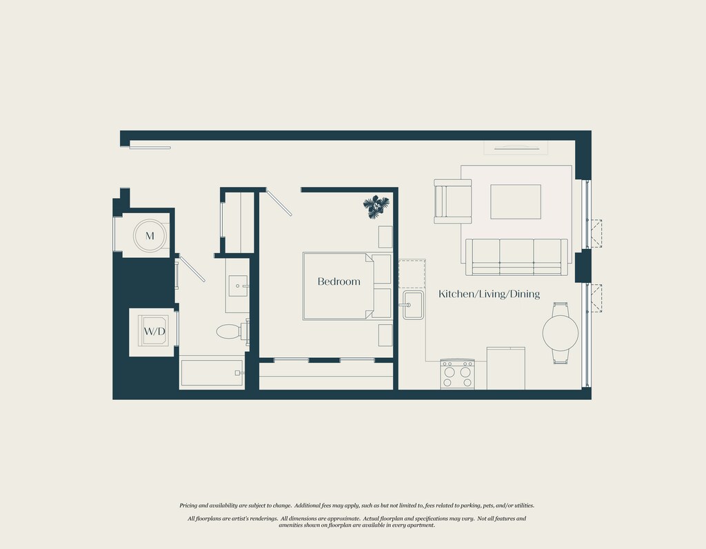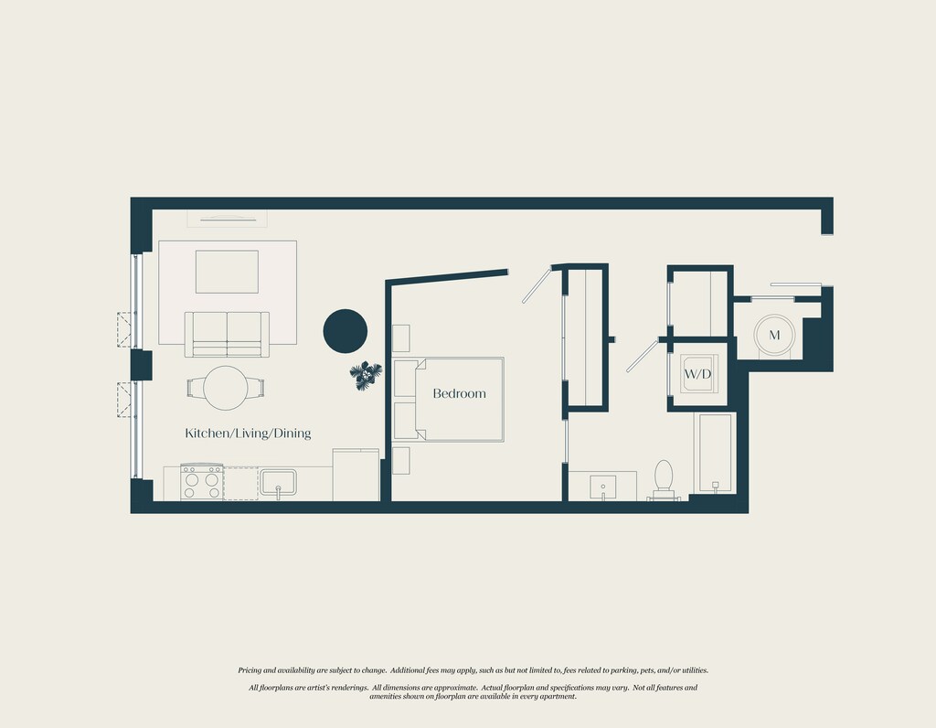 Estudio, 1 Baño, 601 pies²Disponible AhoraEl más grandeEsta opción tiene las unidades más grandes para este modeloGalería del Modelo