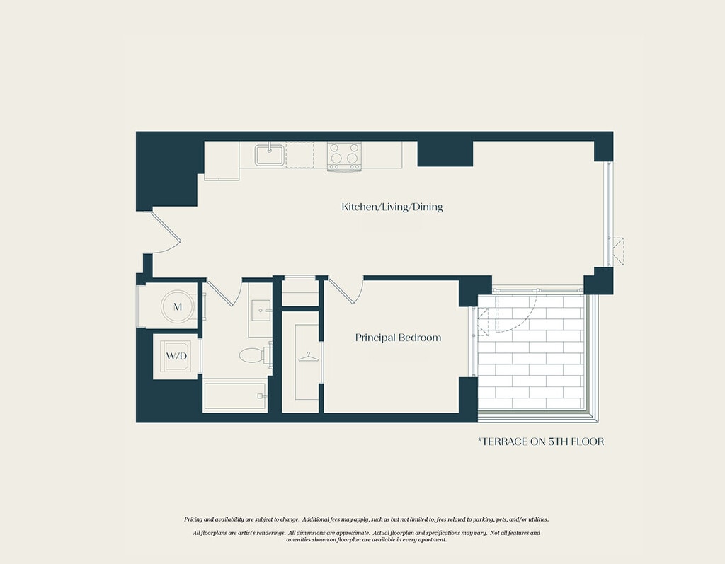 Modelo de apartamento: 0 Bed - 1 Bath | S01Desde $2,490Estudio, 1 Baño, 467-483 sq ftDisponible Ahora![]()