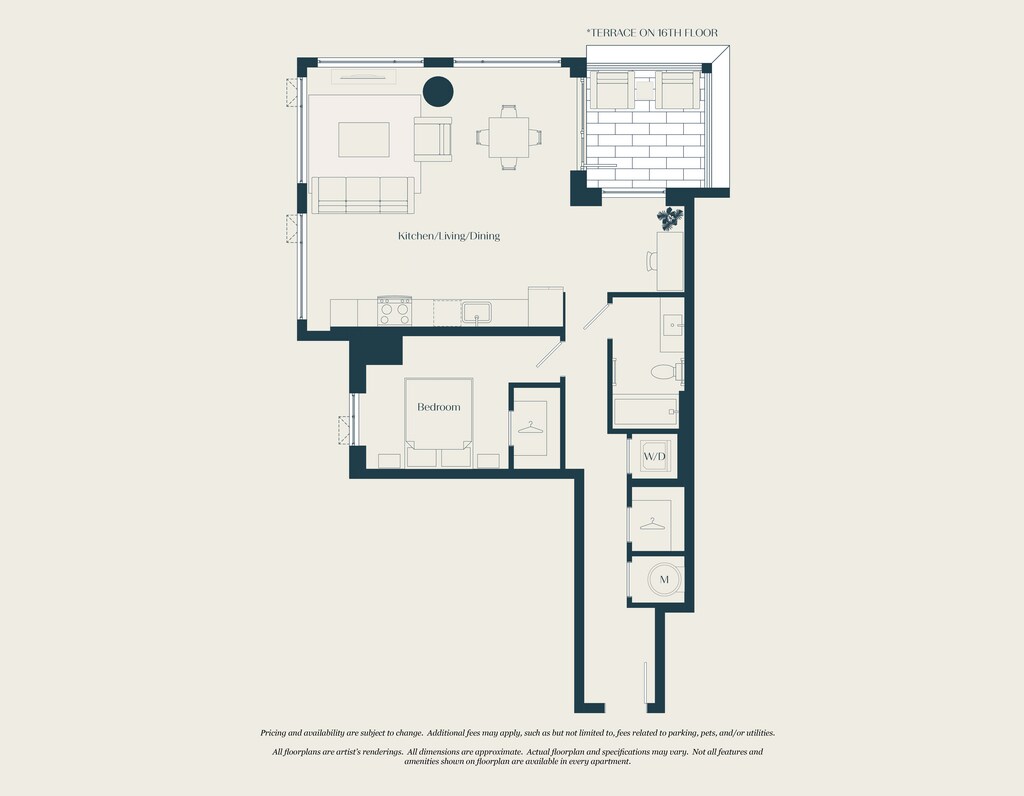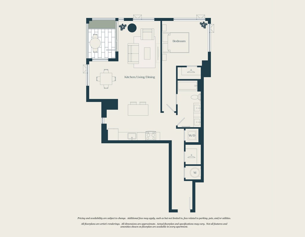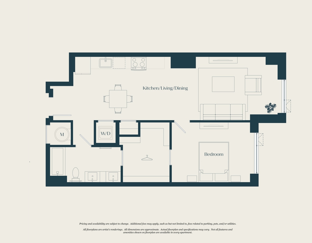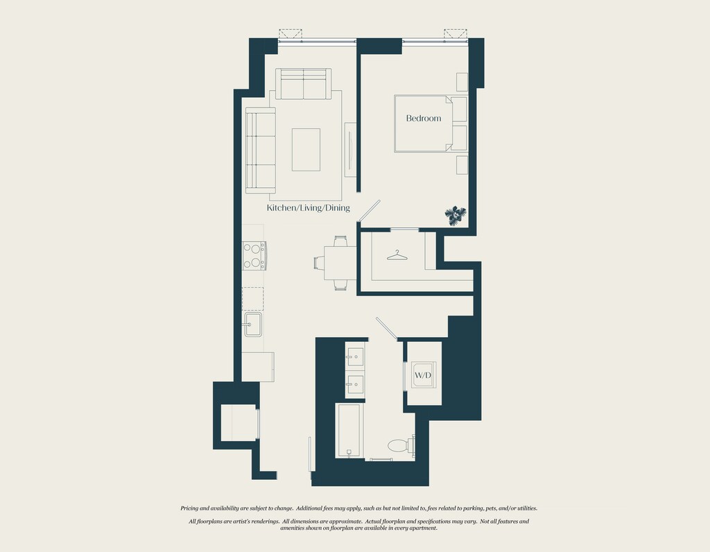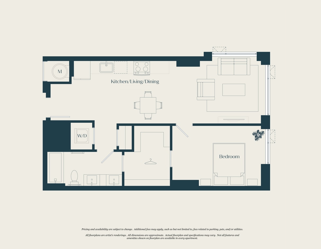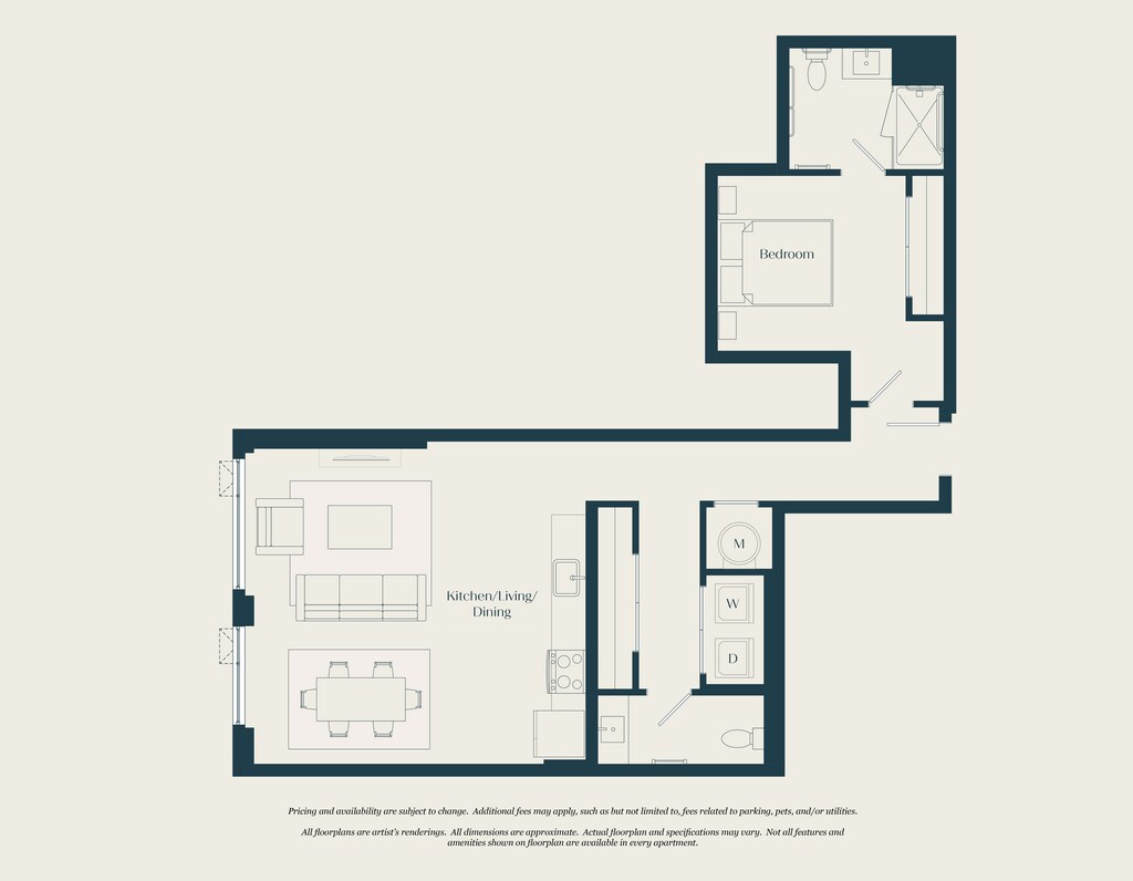 1 Dormitorio, 1 Baño, 599 pies²Disponible AhoraGalería del Modelo