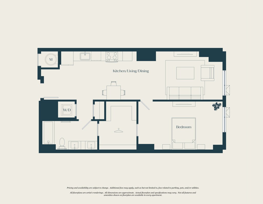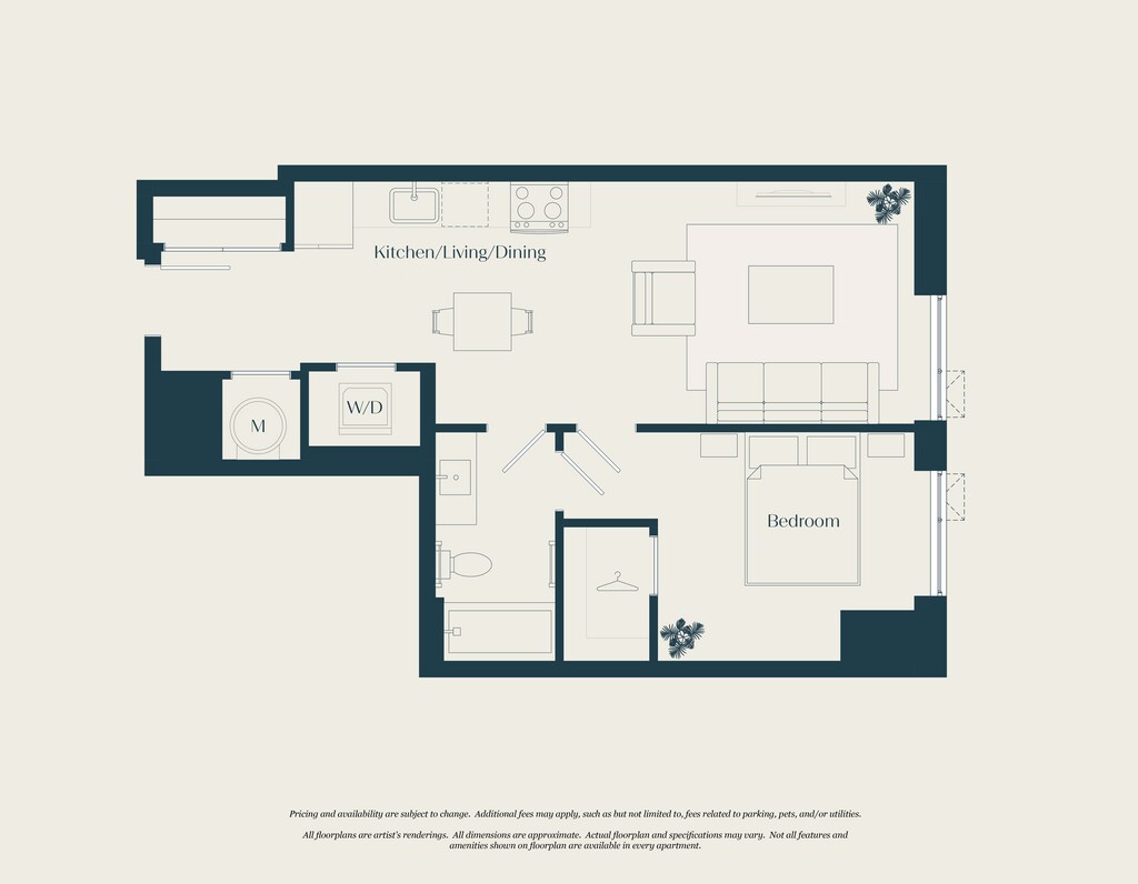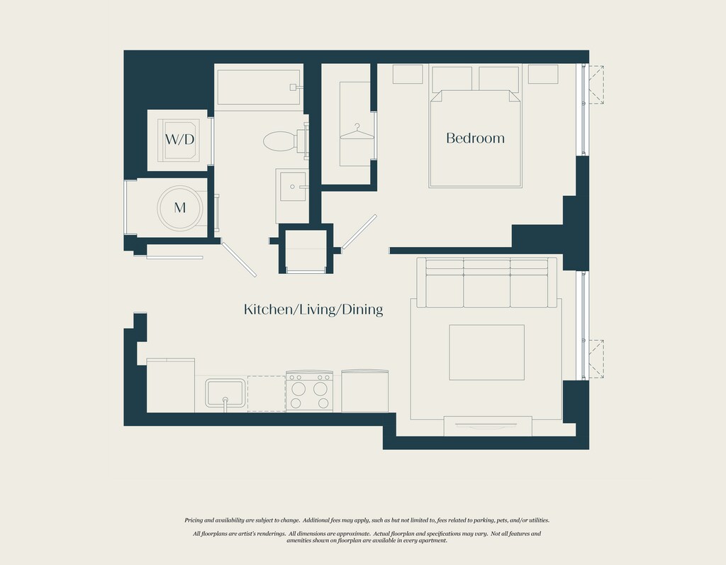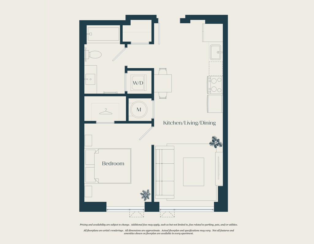 Modelo de apartamento: 0 Bed - 1 Bath | S02Desde $2,300Estudio, 1 Baño, 555 sq ftDisponible AhoraLos planos son representaciones artísticas. Todas las dimensiones son aproximadas. El producto y las especificaciones reales pueden variar en tamaño o detalle. No todas las características están disponibles en cada vivienda en alquiler. Por favor, consulta con un representante para obtener más detalles.